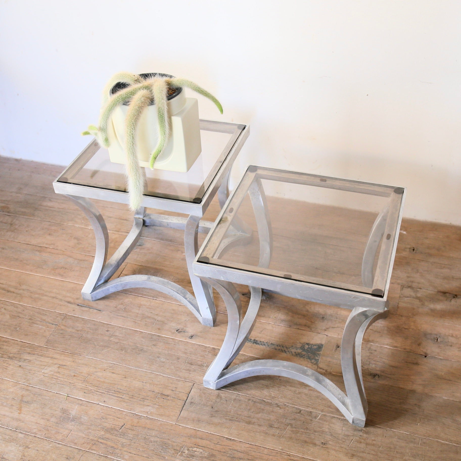 1970年〜80年代ののガラス天板のサイドテーブル