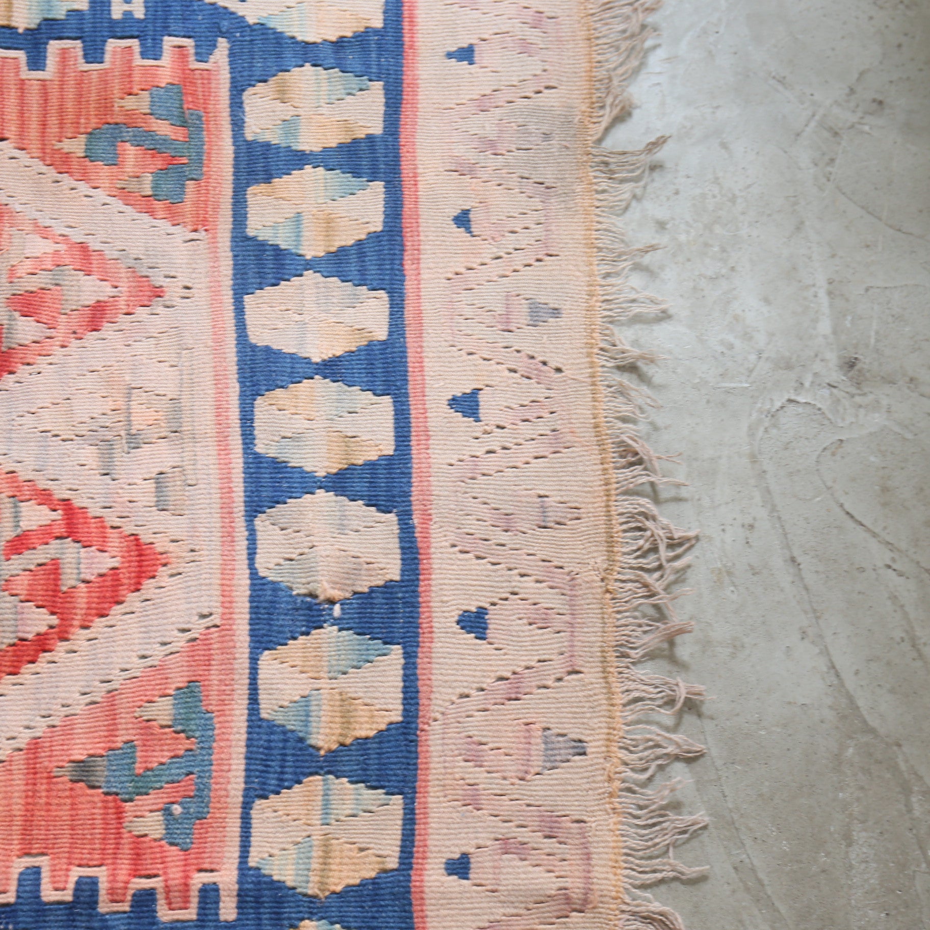 このおおらかさがキリムを個性や味わい深さを持ったもの、温かみのあるものにしています